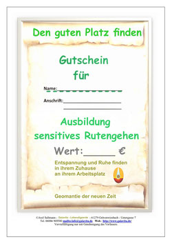 Sie möchten mit einem Gutschein einem lieben Menschen die Teilnahme an einem Rutengänger Lehrgang ermöglichen, oder einen Teilbetrag hinzufügen?